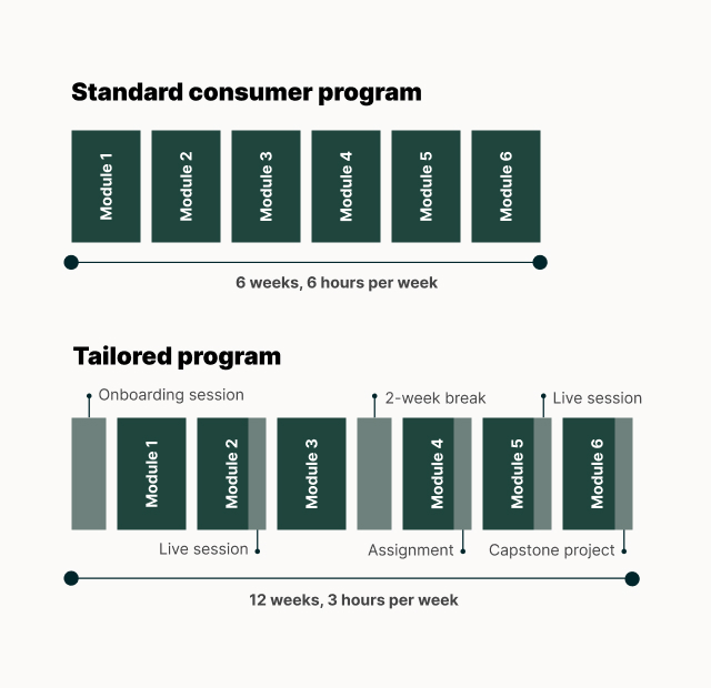 Work with our learning design team to tailor programs that really drive home your organizational context and focus. Plus, find out how executive education can fit your organization’s needs, from dedicated cohorts to tailored live sessions.