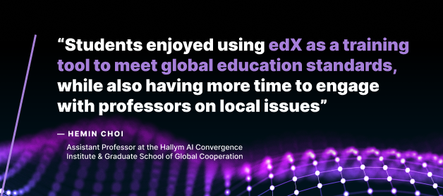 Hemin Choi, Assistant Professor at the Hallym AI Convergence Institute & Graduate School of Global Cooperation, said that junior professors found edX to be a valuable resource for both training and education, helping with everything from curriculum design to course development.