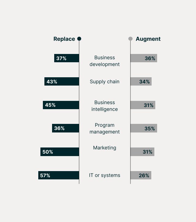 Organizations in the healthcare industry are integrating AI into their strategy with close oversight and some precautions.2 50% of organizations now either require their current workforce to learn AI skills or are even hiring new talent with AI skills.7 Discover how your employees are thinking about the impact of AI on their roles and functions for the next five years.3