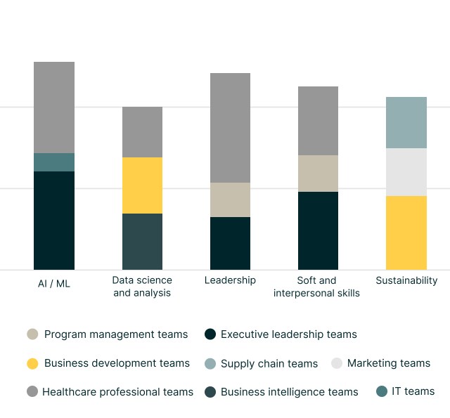 Course topic enrollments by team in the healthcare industry