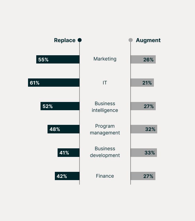 Organizations in the retail or wholesale industry are moving as quickly as possible to integrate AI into their business strategy.2 58% of organizations are already integrating AI within existing job roles.3 Discover what your employees are thinking about the impact of AI on their roles and functions for the next five years.